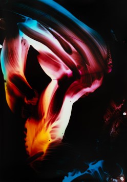 Berlin-based artist Marta Djourina, originally from Sofia, uses light phenomena as a medium in her photographic practice. Drawing on historical techniques, she explores the concept of touch by creating photographic performances, transferring movements directly onto photo paper with various mobile light sources. Through this gestural, almost painterly approach, she breathes energy into the photographic process.